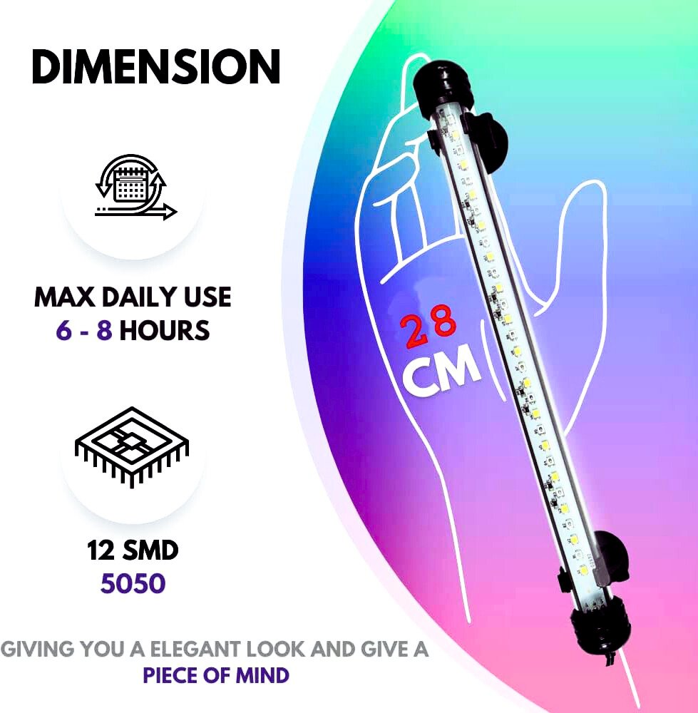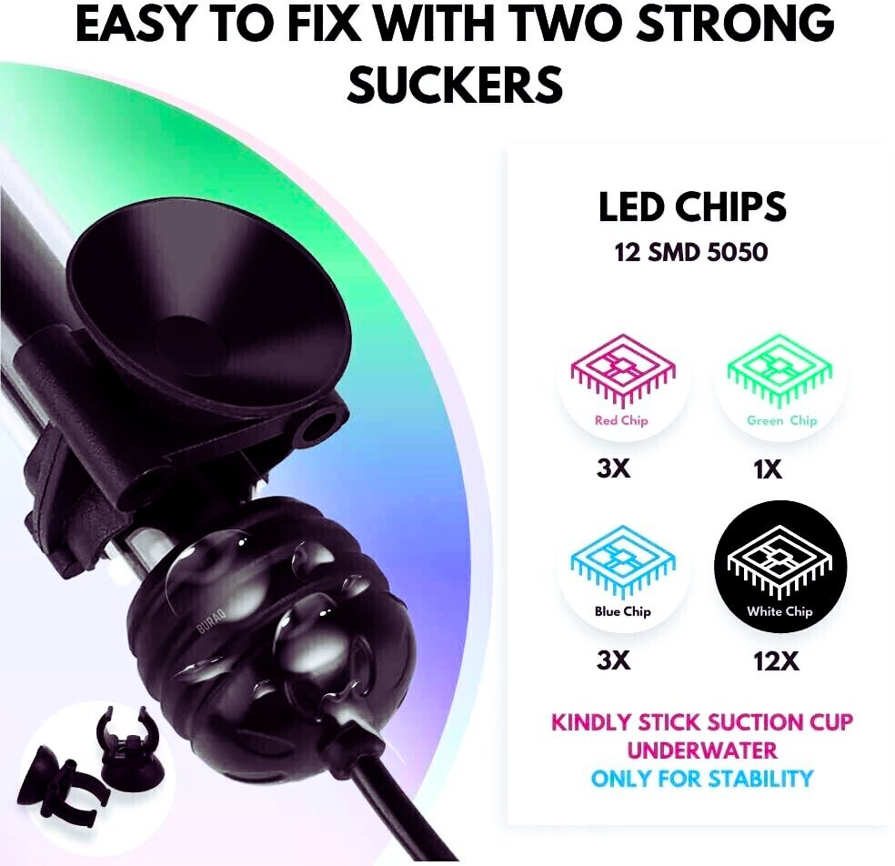 The WRGB color-changing lighting mode creates a beautiful underwater atmosphere while helping aquatic plants grow through improved photosynthesis. Its fully waterproof and submersible design allows safe placement inside the aquarium.