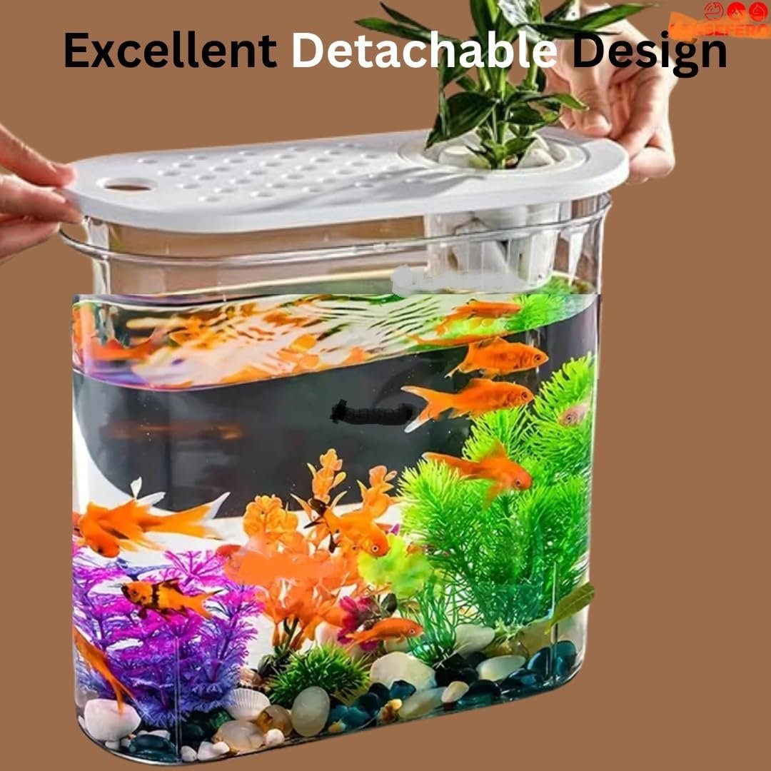 Fashion Hydroponic Aquarium Fish Tank with Plant Pot, LED Light, Filter Pump Mini Aquarium Fish for Small Fishes, Shrimps, Turtle, Betta etc. for Home and Office (BL-09) Random Color