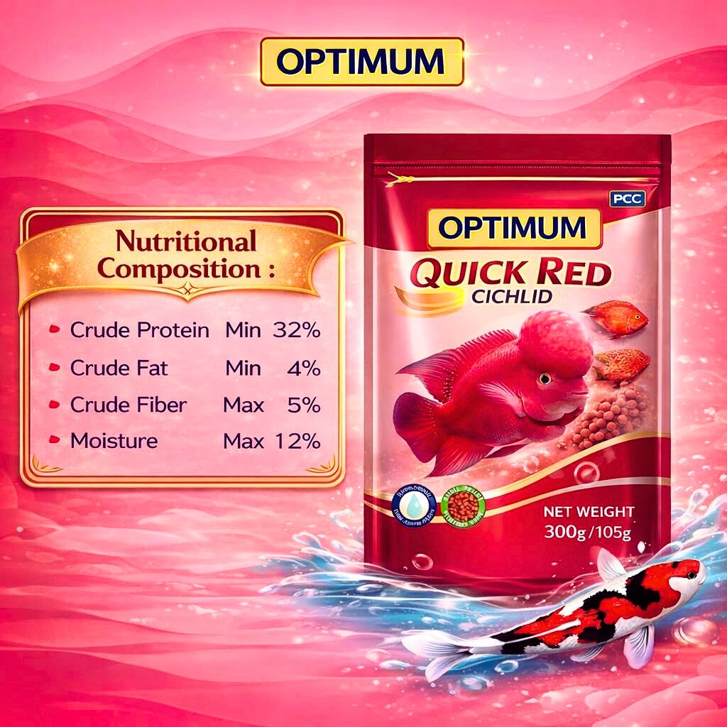 Optimum Cichlid Quick Red is a complete and balanced feed specially formulated for cichlid aquarium fish. It helps enhance the natural color, body shape, and overall health of your fish while supporting strong growth and immunity.